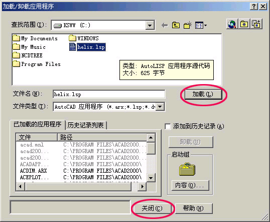 另外,有很多朋友不知道哪里可以得到lisp代码,我推荐大家2个著名的网站:明经通道和晓东空间,那边有很多值得学习的东西